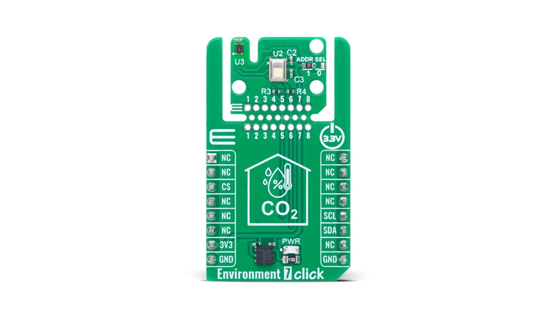 The STCC4 CO2 sensor and the SHT4x temperature and humidity sensor are integrated on a compact breakout board, designed for easy prototyping and sensor performance testing. The STCC4 CO2 sensor on the breakout board is compensated for temperature and humidity by the SHT4x sensor through the recommended application circuit.
